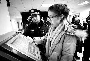 12月23日,西城分局內,一位女事主通過立案公開系統,查詢案件進展情況。本報記者 趙亢 攝