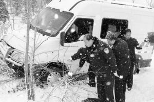年12月28日,暴雪襲向山東威海,路面很快就積了厚厚的一層雪,一輛載有1000余萬元巨款的運鈔車突然沖向了路邊,把10余米的鋼質防護欄撞斷后,又撞斷了一片防護林,側翻到了路基底下,當時,運鈔車的車門被撞壞,5名駕乘押護人員被困車中,車上的巨款隨時可能出現危險……