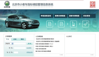 購車指標申請網1月1日零時開通。網頁截圖