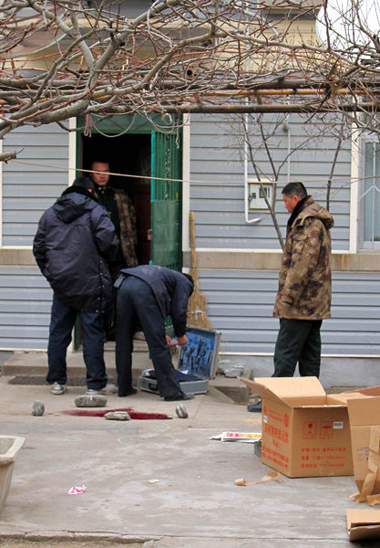 1月5日,公安人員在“1·04”持槍殺人案第一案發現場勘察。新華社記者朱崢攝