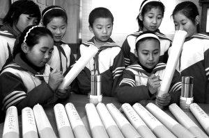 棗莊市紅旗小學的學生在親手制作的香煙模型上書寫吸煙危害警示語,將其作為禮物送給家長,以勸導家長戒煙。新華社發