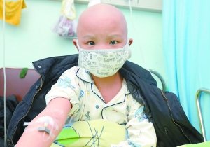 昨日下午,重醫附屬兒童醫院血液科一間病房內,傳出一陣歡笑聲,幾個活潑的卡通人物在DV播放機熒屏中又唱又跳。可它們的歡樂顯然沒有傳遞給坐在13床病床上的8歲白血病患兒趙鵬。這個輸著化療藥物的小男孩那無神的雙眼始終沒有離開過電視,蒼白的小臉上沒有一絲笑容和快樂,寫滿了平靜和深沉,仿佛心思根本沒有放在小朋友們通常都喜愛的卡通片上。