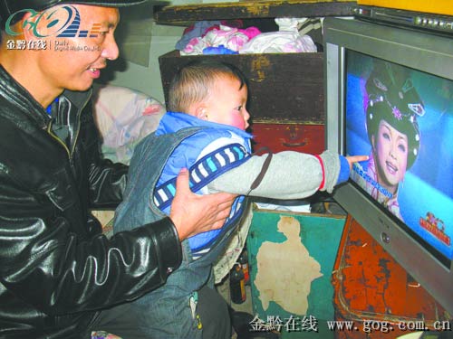 主人劉順祥將正在睡覺的小男孩抱了起來,由于還未睡醒,小男孩開始哭鬧。劉順祥笑著對(duì)記者說:“沒事,有辦法的。”說著便將李玉剛的演唱碟片放入影碟機(jī)中。