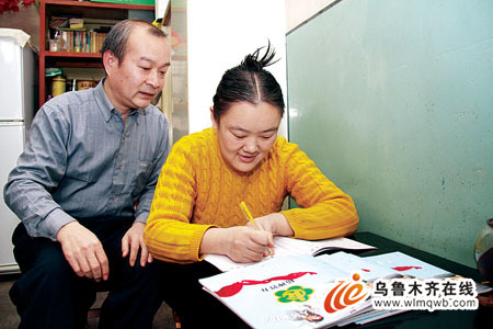 張凌在哥哥張凱旋的指導(dǎo)下寫日記。(記者丁瑜攝)