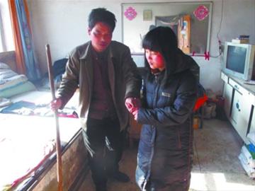 高雙印行動艱難,一只手拄根棍子,女兒攙扶他才能行走。 記者 徐剛 攝