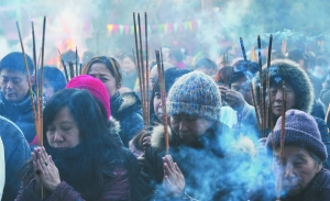 昨天,雍和宮共有6.6萬市民前往進香祈福,希望家人平安,事事順心。