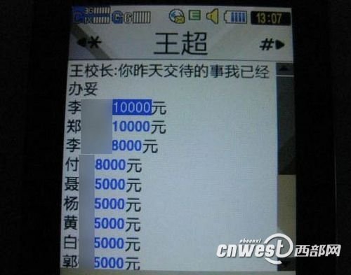 緊接著的圖片則是發(fā)給“王超”的回信:“王校長(zhǎng),你昨天交待的事我已經(jīng)辦妥:李隊(duì)長(zhǎng)10000元;鄭××10000元;李××8000元……大廳內(nèi)的一般人員都按照每人500元。錢(qián)我都是親手送到的,他們互相都不知道……”
