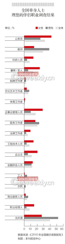 “去年,我們提出了一個理論叫做擇偶的超價理論,即每個人都希望找到比自己實際條件更高的理想的對象;今年我們又提出了擇偶錯位的概念,即人們對另一半的期望是合理的,但它是不對稱的,比如男性的擇偶期望和女性的擇偶期望不吻合,整個的單身人群的擇偶期望跟整個社會情況不吻合。”田范江表示,據《2010年全國婚戀調查報告》顯示,24%的女性認為自己黃金的結婚年齡是28歲~30歲,但只有7.2%的男性認同這一觀點。這意味著百分之十幾的女性可能成為“剩女”。另外,在擇偶標準里,70%以上的女性認為對方要有房子,50%左右的男性也要求對方有房子,可在大城市里,這樣的要求和現實不吻合。