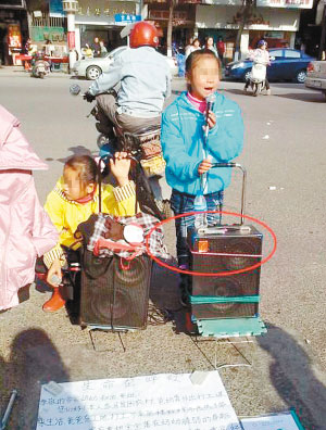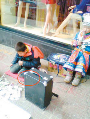 在“隨手拍”解救乞討兒童行動中,細心的網友有了一個意外發現。很多乞討兒童在街頭賣唱時使用的音箱為統一款式,這引發網友對乞討幕后組織的廣泛聲討:“沒錢吃飯,咋還買1千多塊的音箱?”