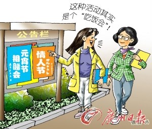 西方情人節(jié)才走,號(hào)稱中國情人節(jié)的“元宵”又接踵而至,一個(gè)星期連續(xù)經(jīng)歷兩個(gè)“情人節(jié)”的洗禮,淡定的寂寞的心又變得躁動(dòng)——“剩斗士”們想找一個(gè)人相伴而過。或許正是看中雙節(jié)過后單身男女內(nèi)心的不安,形形色色的相睇活動(dòng)又“活躍”起來。不過對(duì)于有過三次參加相睇活動(dòng)經(jīng)歷的網(wǎng)友“武松打虎”而言,靠相睇尋真愛是“浮云”,他甚至直言有的相睇活動(dòng)只是“吃飯會(huì)”,還不如上網(wǎng)發(fā)帖征女友來得“快狠準(zhǔn)”……