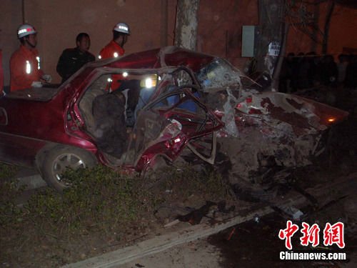 一位現(xiàn)場參與救援的消防隊員告訴記者,事發(fā)時間是當(dāng)日凌晨,接到報警后,8名消防官兵和一輛救援車趕赴現(xiàn)場,現(xiàn)場雜亂不堪,十分慘烈。出租車車前身嚴(yán)重變形,車上男司機(jī)和車后排的一男一女均被卡在車內(nèi)。經(jīng)過30多分鐘的緊急處理,最終將3名死者抬出車外。