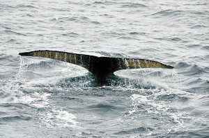尾隨郵輪的座頭鯨在表演“神龍擺尾”