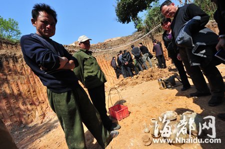 閩侯一村民在拓寬自家后院時(shí),挖出一座古墓,并發(fā)現(xiàn)多件隨葬瓷器,部分趕來看熱鬧的村民竟哄搶隨葬品。昨日中午,省考古隊(duì)和閩侯縣博物館工作人員趕去保護(hù)現(xiàn)場,初步斷定墓葬年代為唐朝,并計(jì)劃進(jìn)行搶救性發(fā)掘。