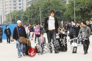 昨日,這一高一矮兩個(gè)男人現(xiàn)身重慶龍頭寺火車站。