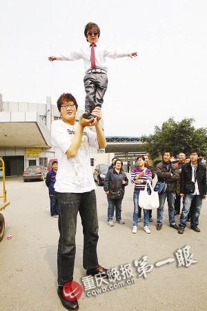 昨日中午12時(shí)左右,張歡和徐國元在經(jīng)紀(jì)人王先生陪同下,抵達(dá)龍頭寺火車站。一出站,身高迥異的兩人即引來眾人圍觀。數(shù)十名群眾亦步亦趨跟著他們,拍照、搭訕、求合影……追星味兒十足。