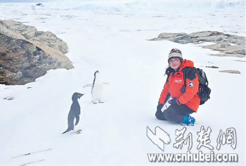 女子10年三赴極地 蹲下身子和企鵝“對話”(圖)