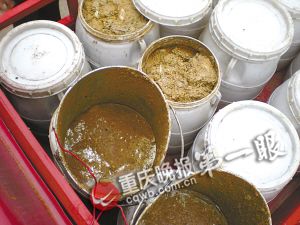 前日上午,云陽縣云江大道重百大樓南側,一個掏糞工在糞池邊上掏扒生活殘渣,他把這些生活殘渣拿去做什么?云陽縣雙江鎮第二派出所民警聞訊跟蹤這個掏糞工發現,他掏出來的竟是地溝油,準備運往土作坊加工后,到市場上銷售。