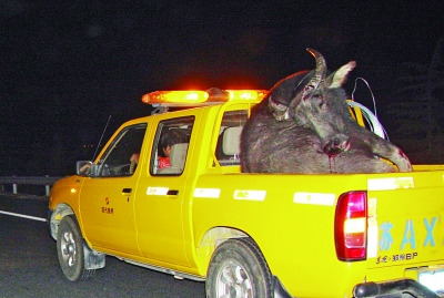 昨天下午,一頭剛剛被牛販?zhǔn)召?gòu)回來(lái)的大水牛,在鎮(zhèn)江句容市郭莊鎮(zhèn)朝陽(yáng)大隊(duì)頂傷5人后,又不顧阻攔竄上了寧杭高速二期逆行向南京溧水方向跑去,3名持槍追擊武警準(zhǔn)備對(duì)其實(shí)施擊斃時(shí),水牛卻迎面與一輛湖南籍大客車迎面相撞,大客車前臉被撞癟、擋風(fēng)玻璃破裂,而這頭600公斤左右的大水牛也因車禍當(dāng)場(chǎng)斃命。
