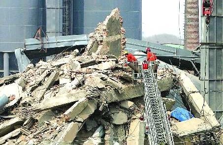 14日上午8時20分許,位于青島城陽區(qū)的青島嶗巖粉磨建材有限公司一粉末儲存罐突然倒塌,儲存罐又將緊挨著的一棟二層廠房壓塌,兩名職工被埋其中。事發(fā)后消防部門動用生命探測儀、搜救犬等全力搜救。14日晚8時許,記者得知兩名被困職工已經(jīng)死亡。