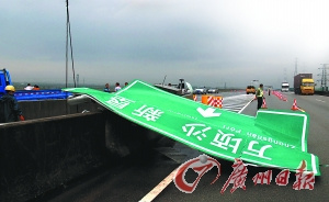 南沙區多處路牌倒塌。實習生羅知鋒 記者杜江 攝