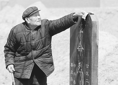 整整一個冬天,因為腿疾,河北昌黎縣汪上村85歲的村民王文彬(上圖。姜濤攝)沒能下炕。在一個暖和的日子,老人的女婿王云旗要推著老人到屋外透透氣。“去看看烈士墓吧!”老人悄聲囑咐女婿。