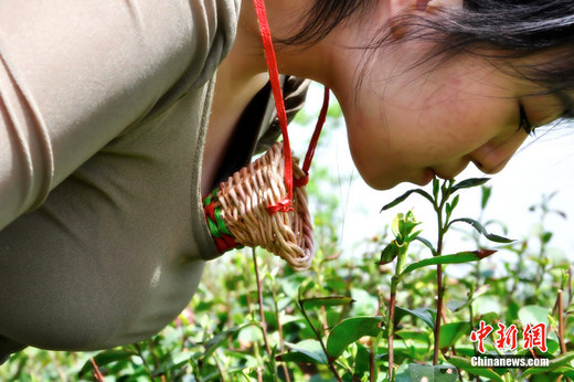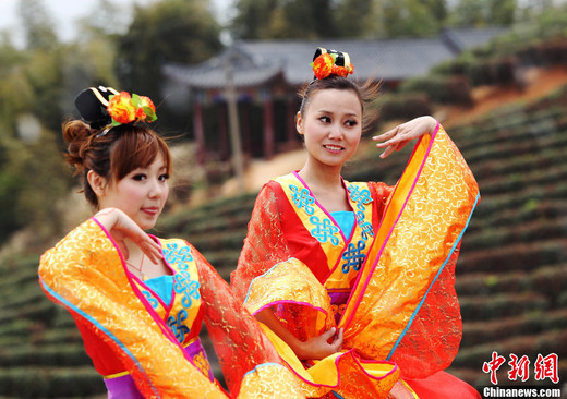 4月16日,河南信陽一公司在萬畝茶園舉行“茶樂會”,茶葉美女們在琴師的古典音樂下衣袂飄飄,宛如天女下凡。日前,該公司發布招聘采茶女的信息,要求胸圍C罩杯且是處女,該招聘信息發出后,被網友傳至各大論壇并引發熱議。中新社發 王中舉 攝