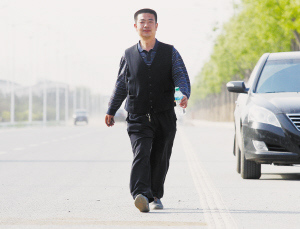 開車繞全長76公里的石環一圈,不過一頓飯的工夫,而如果徒步走下來,要用多長時間?在石(石家莊)工作的靈壽人武秋江用雙腳給出了答案:17小時20分。24日零點30分,一瓶水、兩個燒餅,幾塊零錢,武秋江獨自一人從位于槐安路與西石環的單位宿舍出發了;當天17時50分,一夜未睡、腳步未停,他回到原地。“我要通過這樣的挑戰,加強鍛煉身體,保持健康體魄!”對外人看來“有病”的做法,他如此解釋。