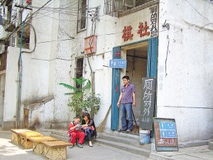 24日有市民反映,漢陽歸元寺路有家一樓住戶將自家廁所對外經營,門口還掛了幾塊和城管免費公廁很相似的標牌,實在不倫不類。
