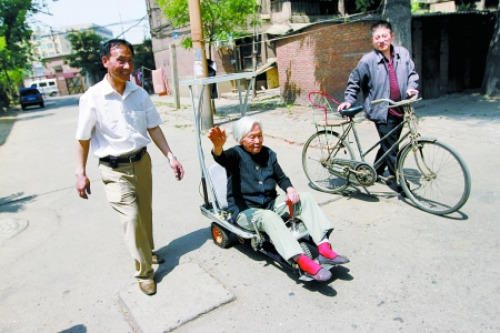 洛陽一位民間發明家,為母親制造了一輛太陽能環保車,以便其出門散心。整輛車花費不足500元,大部分部件都是廢物利用。