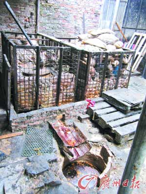 收集來的原料被放在大籠子里,壓出油水。