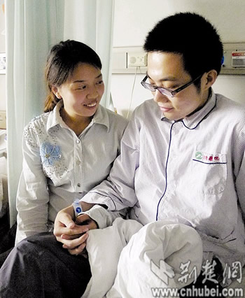 徐輝與田云同齡,來自漢川,是武漢大學電子信息學院2010級碩士研究生。今年3月底,徐輝右下腹出現脹痛,被醫院確診為腹膜惡性腫瘤。得知男友病情后,田云猶如遭遇晴空霹靂。