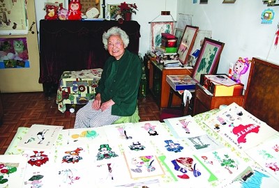 “這幅美人圖真漂亮,這幅更好看……”最近幾天,走進南京醫科大學,總會看到一群學生擺攤賣精美的布貼畫,一打聽,原來這些布貼畫都是南醫大86歲退休老教師秦明健多年來用一片片的布料貼成的,為了資助貧困生,她把這幾年的“存貨”全部捐了出來,讓學生們去賣,能賣多少錢都捐給貧困生。近日,記者帶著讀者的好奇來到了秦明健老師位于峨嵋嶺的家。