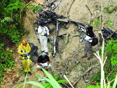 救援人員在墜機現場工作。