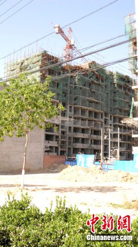 來自四川省資中縣的農(nóng)民工熊祿超16日向記者介紹,今年2月21號,他和40多名老鄉(xiāng)在一小包工頭的組織下來到曲陽縣“陽光家園”工地,在4號樓和3號樓從事木工和鋼筋工工作,施工方為他們臨時租賃一家養(yǎng)雞場作為棲身之所。兩個多月的時間里,工地上有的樓房已經(jīng)蓋的超過了10層,他們也領(lǐng)到了50萬元工資,尚欠約30萬元。5月7日,“陽光家園”在建樓房突然被曲陽縣國土局貼上封條,然后被斷電。民工們則被開發(fā)商和施工方負責人告知暫時“放假”回家,但無人出面解決剩余工資。因擔心開工遙遙無期,有20多名農(nóng)民工決定留下來討要剩余的工資。