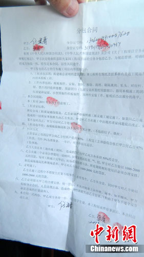 小包工頭與承建方簽署的“分包合同”。呂子豪 攝