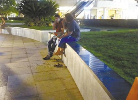 5月29日晚上9點(diǎn)半左右,網(wǎng)友“白白的太陽”在和義大道星巴克前的噴前邊,看見兩名外籍男子坐在草坪邊上嗑瓜子,腳下吐了一地的瓜子殼。