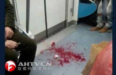 網友發圖稱,地鐵列車上,一名臉部被劃傷女子的血跡。