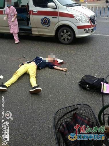 中國江西網訊 記者張梅報道:5月10日早上7時15分許,定南縣東風東路龍神湖路段發生一起交通事故,該縣南方醫院一輛救護車撞上一輛垃圾清理車后,將一名騎自行車的15歲女孩當場撞致身亡,事發后,肇事救護車逃逸。目前,司機和肇事車輛已經歸案,事故正由交警部門進一步調查。