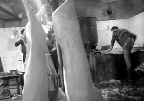 近日,本報新聞熱線96009-1接到群眾舉報:“沈陽祝家大集上有人賣的生鮮豬肉沒有蓋戳,我們懷疑是問題肉。肉販子的進貨渠道,是藏在莊稼院里的一個黑屠宰場。”“每天凌晨三四點鐘,總會聽到殺豬的慘叫聲此起彼伏,吵得周圍住戶沒法睡覺;血水、糞便、豬毛等污穢物遍地流淌,弄得環(huán)境臟亂差。”
