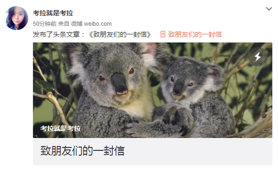 我對自己年輕單純、涉世未深、偏執盲目鑄成的大錯感到追悔莫及,并真心悔悟,我愿為我的過錯承擔責任,今后我將告別舊我,不負韶華,給大家展現一個全新的考拉。