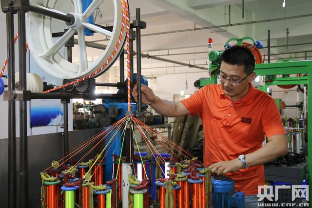 央廣網青島7月19日消息(記者 王晶)“研發新型繩纜時,曾在車間待過2天零一夜沒有出去,有時累了就直接抱著纜繩睡過去了”。7月19日中午,青島天氣燥熱難忍,海麗雅集團80后制繩技師徐連龍帶領記者徑直走向制繩車間,車間內噪音高達80分貝,聽清旁人說話都很費力甚至有些刺耳,但卻是徐連龍過去8年來一直堅守的研發“陣地”。