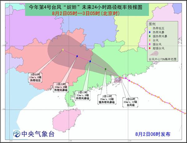 預計,“妮妲”將以每小時25公里左右的速度向西偏北方向移動,強度繼續減弱,將于2日傍晚前后進入廣西境內,隨后于2日夜間在廣西境內減弱為熱帶低壓。