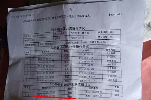 他們于是去了山東省招生考試辦公室,招辦的人告訴他們,讓公安、學校、偷改他兒子志愿的那個學生及其家長,開出各種證明,或許這件事還有彌補的可能。但他在找到那個學生的家長,讓他們寫為何修改孩子志愿的證明時,對方發現要按手印,就不給他們寫了!公安那邊沒有什么調查結果,學校那邊也沒法給開證明。 眼看著本科招生季就要過去。他們實在耗不起了!
