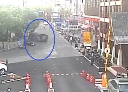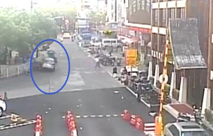 監控顯示,8月1日凌晨5點48分,這輛轎車在梅州街轉彎時因車速過快發生了側翻。事發后,周邊居民把車上的4人救了出來,并立刻報了警。