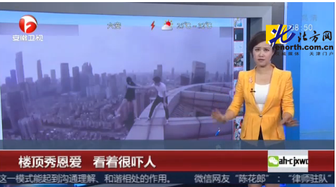情侶大樓頂邊緣花樣作死秀恩愛 看完讓人冒冷汗(圖)