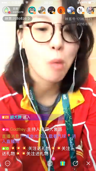記者注意到,傅園慧直播時的觀眾人數一直在瘋狂飆升,20多分鐘內,就有800多萬人觀看,網友刷屏的速度讓傅園慧都看不清網友說了什么。