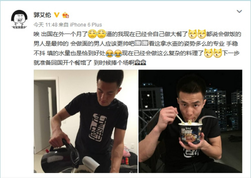 雖然男籃在本屆奧運上未嘗勝績,但球員們的心態還算平穩。北京時間12日中午,郭艾倫在微博中曬出自己吃方便面的照片,“出國在外一個月,逼的我現在已經會自己做大餐了。”照片中,郭艾倫手持水壺正在泡面,“都說會做飯的男人是最帥的,會做面的男人應該更帥吧!看這拿水壺的姿勢多么的專業手穩不抖,填的水量也是恰到好處。現在已經會做這么復雜的料理了,下一步就準備回國開個餐館了,到時候捧個場。