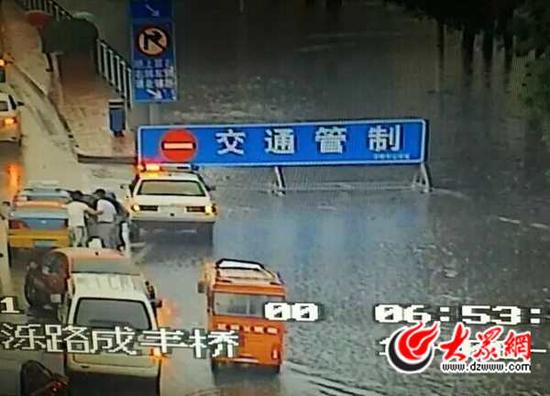 濟南早高峰又遭暴雨“添堵” 多路口積水緊急交通管制