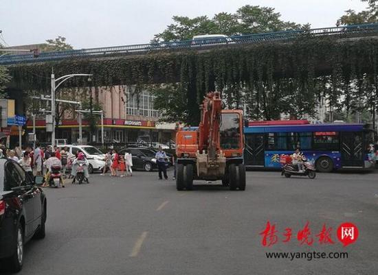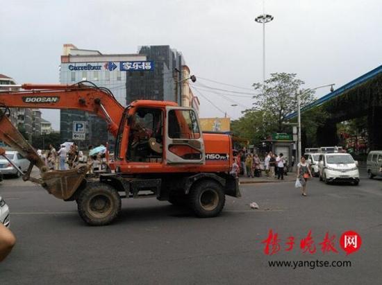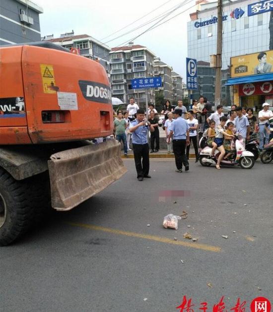 21日下午4點鐘,一輛無牌上路的挖掘機開到鼓樓區大橋南路與花家橋路口右轉彎時,將一名過街行人碾壓致死,警方到場后將司機控制住。