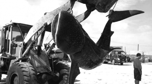 有二十多年打魚經(jīng)驗(yàn)的老林仔細(xì)看了看這條大魚,看樣子像是一條鯊魚,身上長著美麗的白色斑塊。老林組織工人試探動(dòng)了動(dòng)這條鯊魚,結(jié)果還是毫無反應(yīng),一動(dòng)未動(dòng)。“應(yīng)該已經(jīng)死了,如果還活著,這魚肯定要掙扎。”在確定魚已經(jīng)死亡后,老林便組織工人將網(wǎng)收起來,慢慢拖到岸邊。老林捕獲鯊魚的事情很快便傳開了。姜格莊邊防派出所民警了解有關(guān)情況后,迅速趕到現(xiàn)場,在詳細(xì)查看這條魚后,確認(rèn)這是一條鯨鯊。據(jù)測算,這條鯨鯊長約4 . 5米,最寬處約1 . 5米,重約1 . 5噸。鯨鯊屬于國家二級(jí)保護(hù)動(dòng)物,不能在市場上隨意買賣。